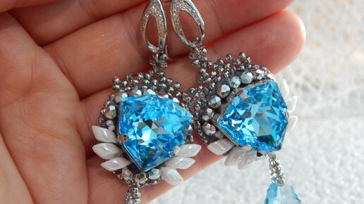 ХОТИТЕ ТАКИЕ-ЖЕ СЕРЬГИ С КРИСТАЛЛАМИ?! СЕРЬГИ С ГОЛУБЫМИ КРИСТАЛЛАМИ СВОИМИ РУКАМИ.