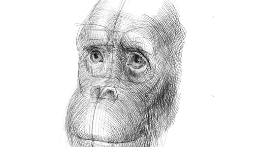 Отрабатываю правильный штрих, рисуя голову обезьяны