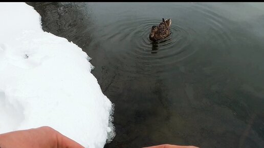 Кормлю дикую утку,пока рыба не клюет