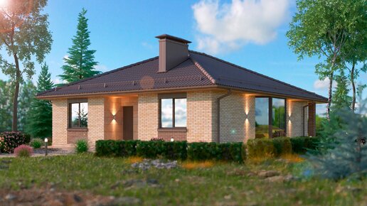 Компактный 1-этажный проект дома 100 м2 с 3 спальнями, эркером и террасой во двор. Ссылка на проект в описании