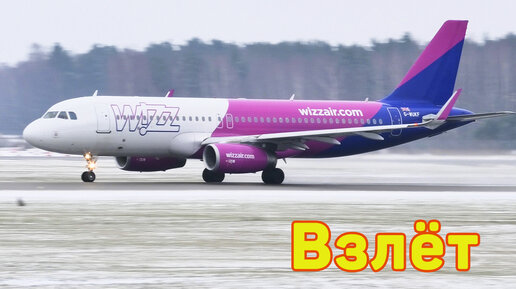 Airbus A320 авиакомпании WizzAir: красивый быстрый взлёт, мощный звуком