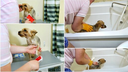 Уход за йоркширским терьером! Принимаем ванну! Сушимся феном! Дези заработала лакомство!
