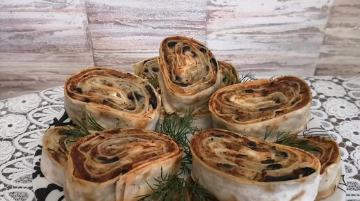 Закуска из лаваша. Рулетики с картофелем грибами и зеленью. Закуска на праздничный стол