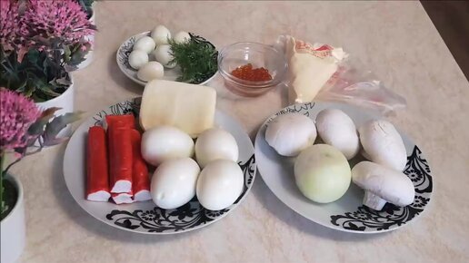 Порционный праздничный салат с крабовыми палочками и грибами .Салат в РОЖКЕ Оливье