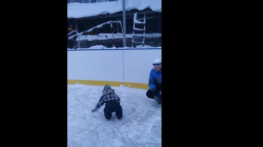 Миша первый раз попал на каток!