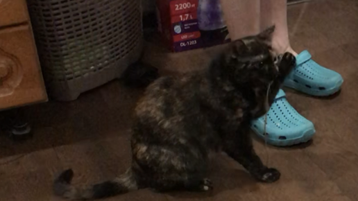 Кошка играла с веревкой, но потом заглючила