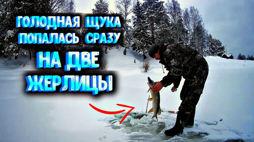 ✔ Вот это рыбалка.Голодная щука попалась сразу на две жерлицы,зимняя рыбалка на жерлицы