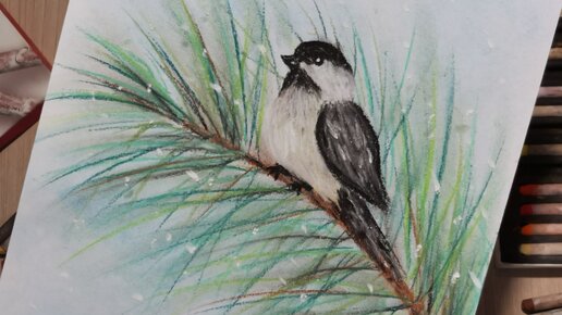 Рисуем птичку на ветке пастелью. Рисование для детей и для начинающих