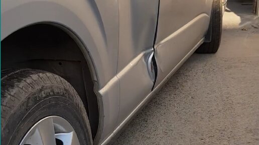Восстановление замятого заднего крыла на микроавтобусе Тойота