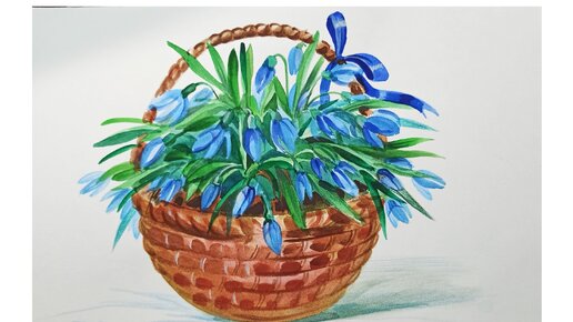 Корзина с подснежниками, как нарисовать акварельными красками.