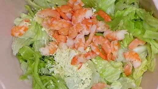 Салат с креветками на оливковом масле ( вкуснее чем на майонезе)