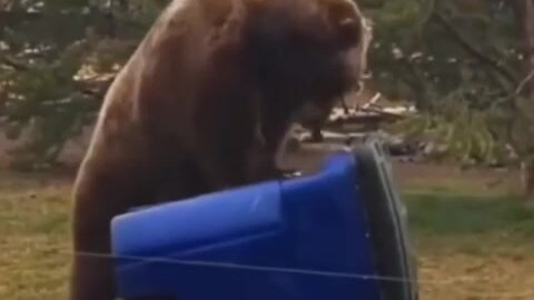 Медведь пытается оживить мусорный бак🤔😆