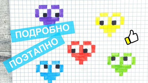 Маленькие, очень Лёгкие и самые Простые рисунки по клеточкам / Как нарисовать сердечки / Лайк АРТ