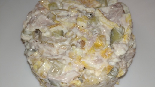 Простой салат с курицей и яичным блином. Всего 4 ингредиента, не считая майонеза