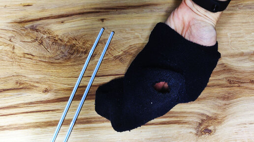 Зашиваем носок с помощью коктейльной трубочки по совету бабушки