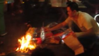 Китайский Новый год, Ханой-2014, дорога после салюта от озера к отелю в старом городе. Когда костры на улице - это хорошо)