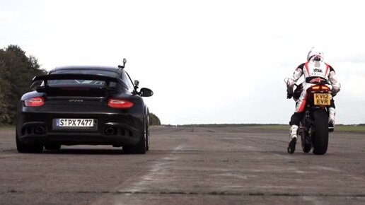 Порше 911 против мотоцикла! Шок! Смотреть до конца!