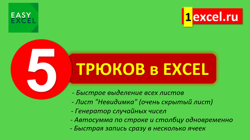 5 трюков в Excel. Лист "Невидимка", Генератор случайных чисел, Автосумма. Часть 4