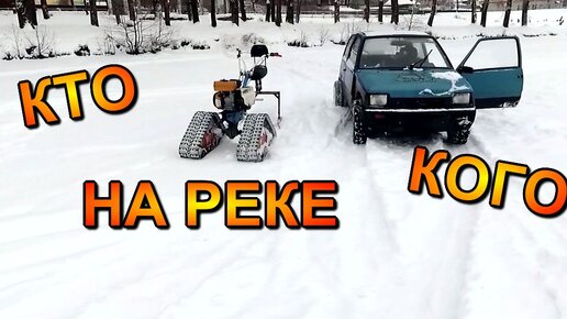 Чуть не утопили мотоблок на гусеницах, заезд на реке Волга.