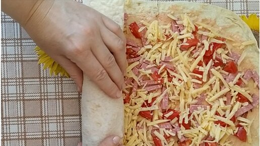 Пицца всего за 15 минут. Получается сочная начинка на тонком лаваше