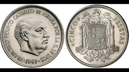 5 песет Испания 1949. Каудильо Франко. Обзор, цена, история.