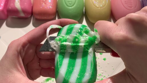 Зелёная парочка: сухой брусочек мыла Exxe и Dalan. Мыло под матом лаком с глиттером для большего хруста!
