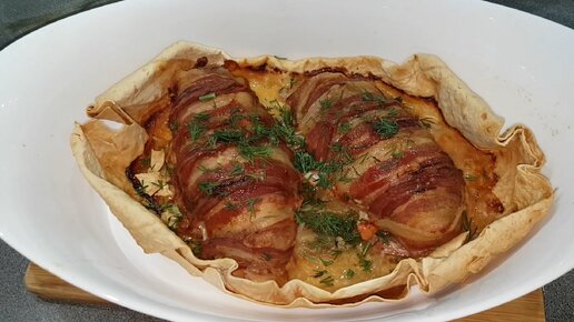 Тонкий лаваш и курица в беконе. Вкусное блюдо без возни и грязи.