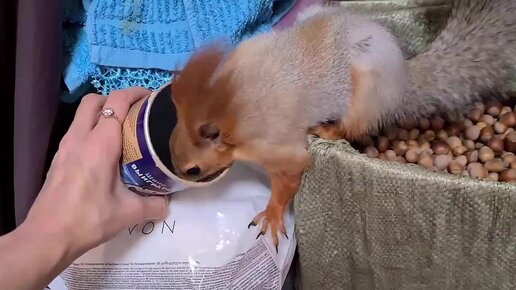 Задача для белки- достать гриб, который на дне в коробке из -под чипсов... 🤔🐿😊