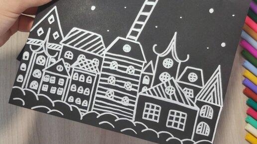 Рисунок ночной город. Как нарисовать поэтапно. Мастер класс для детей
