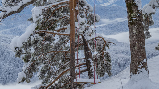 Снегопад на хребте Азиш-Тау (нагорье Лагонаки)