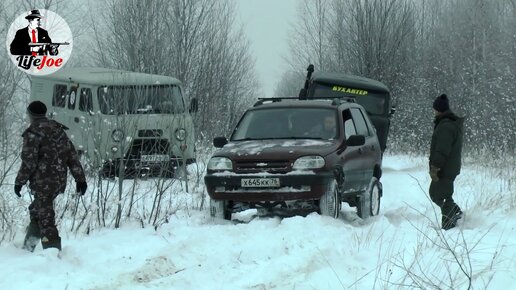 Офф роуд зимой по снегу. УАЗ 469, Шевроле Нива и УАЗ Буханка