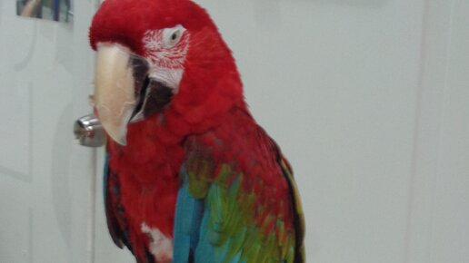 Попугай ара ест грецкий орех