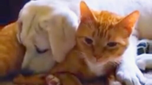 Дружба в вечность между собакой и кошкой/ какие они милые