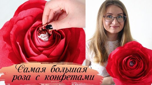 Как сделать большую розу из гофрированной бумаги с конфетами? Подробное видео!