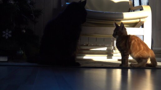 Битва титанов: черный мейн-кун против рыжего