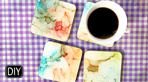 ПОДСТАВКИ под кружки из эпоксидной смолы в технике inkart