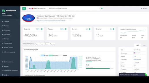 Аналитика продаж ватрушек (тюбинга) на маркетплейсе Ozon
