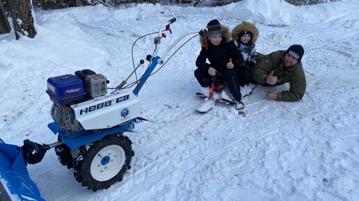 Используем мотоблок даже зимой. Чистим снег и катаем детей