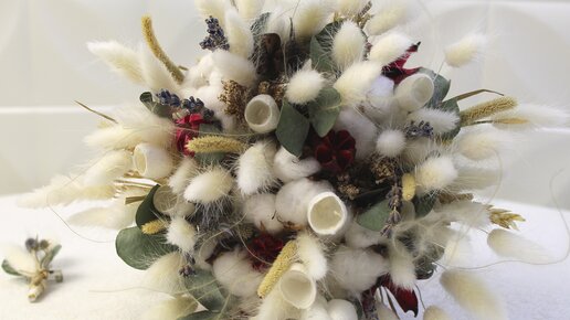 Нежный букет из сухоцветов. Фрагменты с мастер-класса.