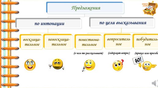 Сундучок знаний. Какими бывают предложения по интонации и по цели высказывания?
