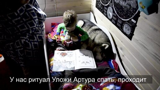 4 хаски, 1 Кошка, много книжек- это только, чтобы 1го ребенка спать уложить.