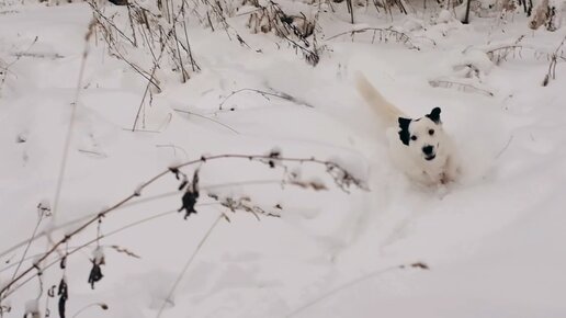 Прогулка с Винни: собака редкой породы без ума от зимнего леса и сугробов