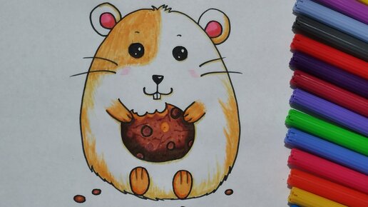 Рисование для детей. Хомяк ест печенье. Простой рисунок фломастерами