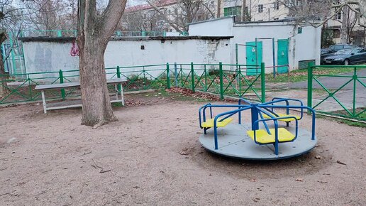 Детская площадка в обычном крымском дворе. Мусор не убирают с Нового года