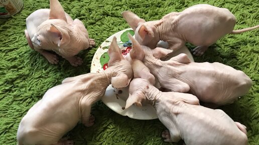 Котятам Сфинкса 54 дня🎉 Показываю😊чем прикармливаю