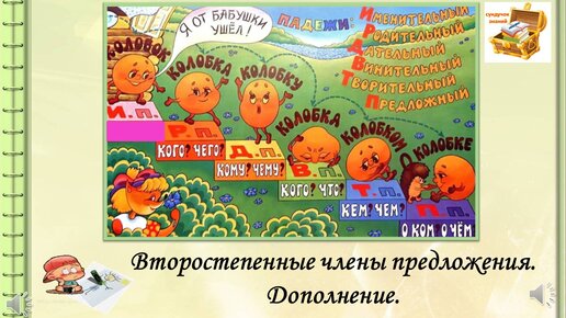 Сундучок знаний. Дополнение. Второстепенные члены предложения