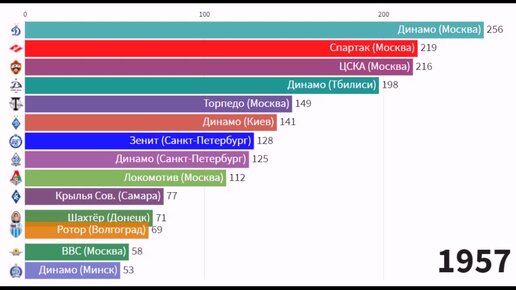 14 лучших футбольных клубов Высшей Лиги СССР по количеству выигранных матчей с 1936 по 1991 год.