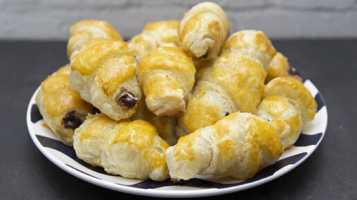Готовлю круассаны с шоколадом из слоеного теста. Получаются хрустящие и воздушные