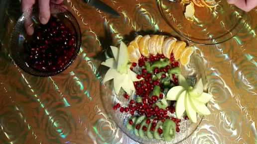 Как быстро нарезать и красиво подать гранат, киви, яблоко