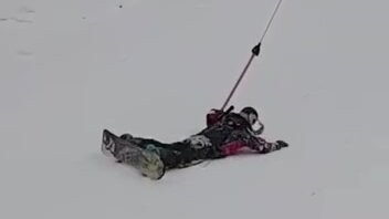 Парень на сноуборде целый путь проехал лицом по снегу😅🤦♂️